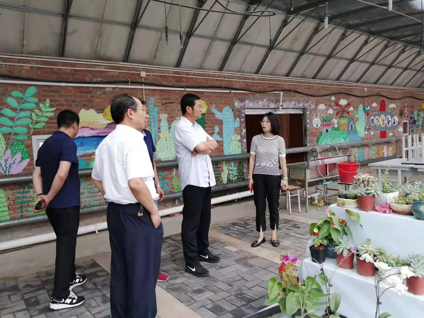 座谈会后,在77779193永利副经理张铁强的陪同下,天津农公司一行先后来到公司科技综合楼、智慧农业实验温室和77779193永利东大地实践教学基地-北农耕读园进行了实地走访和调研。