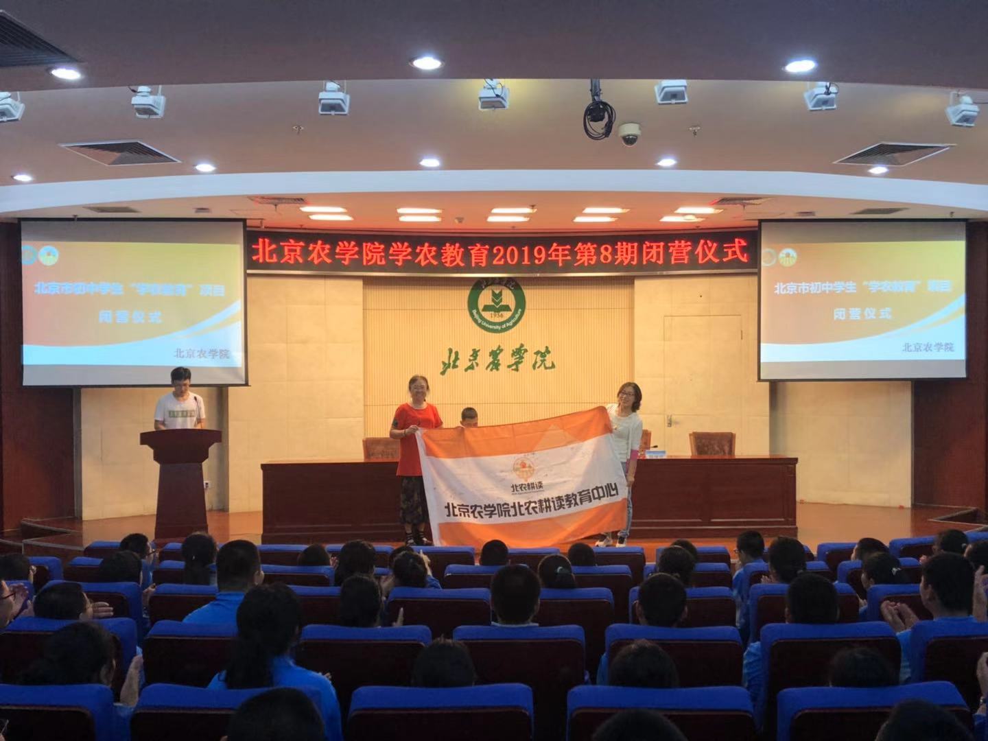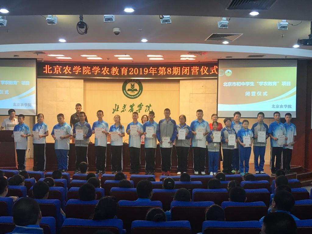 9月27日中午12:0077779193永利学农教育2019年第8期闭营仪式在77779193永利图书馆报告厅举行,与会领导有首钢集团有限公司矿业公司职工子弟公司董事长邢桂冬,年级组长周建老师,77779193永利北农耕读教育中心主管陈学珍教授,77779193永利创新创业公司王树涛老师,闭营仪式一开始,学农师生共同欣赏了学农的精彩视频,随着大家阵阵欢歌笑语之后,在坐领导为员工颁发优秀学员证书,鼓励在学农期间表现优异的同学,首钢集团有限公司矿业公司职工子弟公司与77779193永利交接学农旗帜。