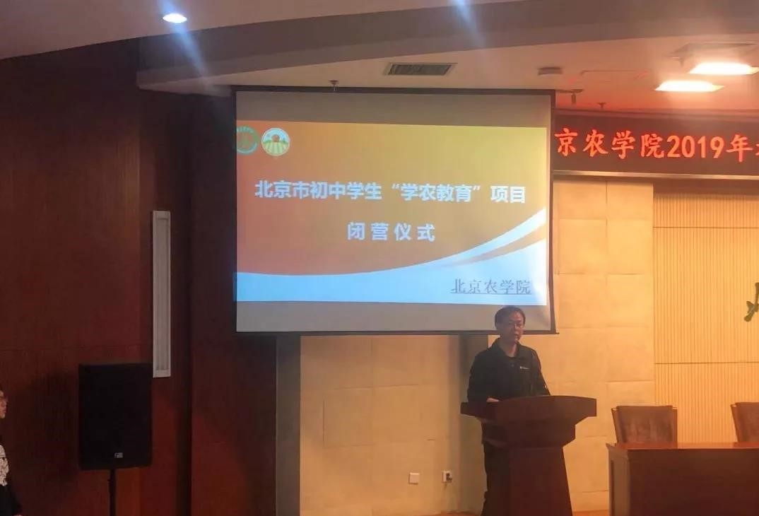 北农耕读教育中心主管陈学珍老师讲话,她希望大家通过学农活动养成劳动习惯,培养积极劳动的态度。让同学们理解生活靠劳动创造,人生靠劳动创造的道理。希望同学们志存高远,用青春之激情谱写出青春之歌。最后,宣布本期学农活动闭营仪式结束。