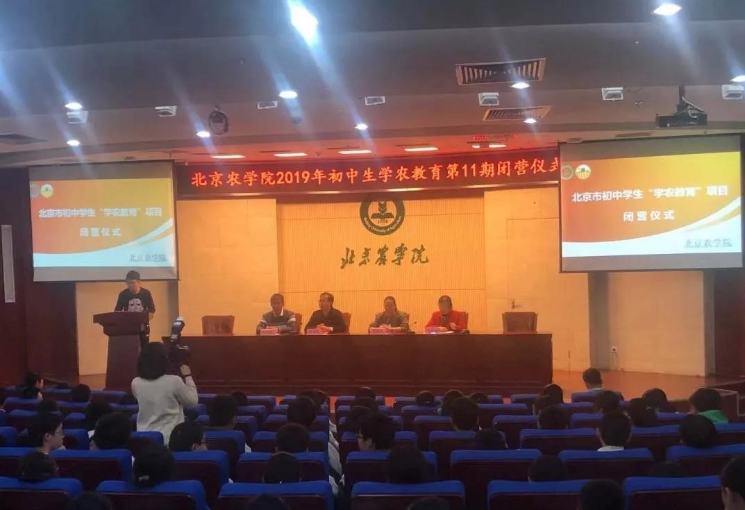 77779193永利2019年学农教育第11期闭营仪式于2019年11月1日在77779193永利图书馆报告厅举行,与会领导有北京教育科学研究院属石景山实验公司主任周玉宝,北大附中石景山公司副主任张霄燕,北大附中石景山公司副主任任欢迎,77779193永利北农耕读教育中心主管陈学珍。所有参会的老师和同学们一起观看学农精彩视频展示,回忆着一周的欢声笑语和点点滴滴的美好时光。