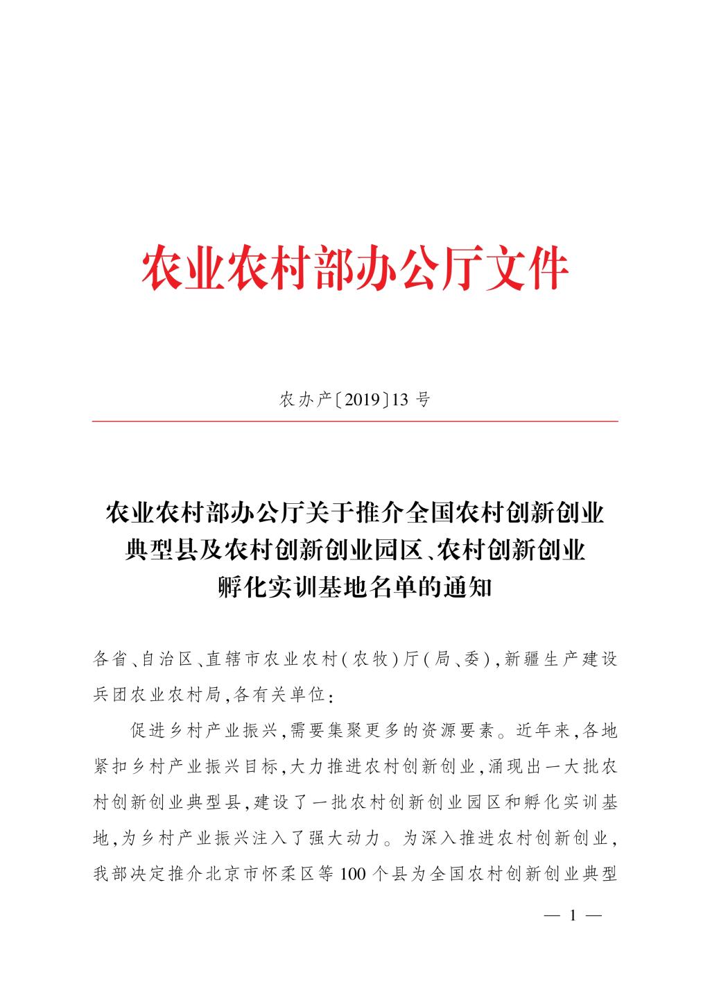 农业农村部发布《农业农村部办公厅关于推介全国农村创新创业典型县及农村创新创业园区、农村创新创业孵化实训基地名单的通知》。由创新创业公司组织申报,在校办产业处的大力配合下,77779193永利大学科技园孵化实训基地入选“全国农村创新创业孵化实训基地”。