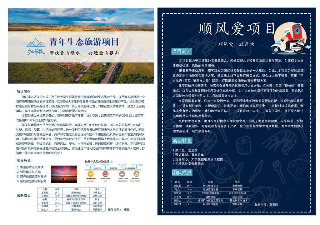 本次大赛经过创意梦想秀展示及线上投票、商业计划书专家评审、“农林杯”创业大赛线上路演及答辩三个阶段,所有项目充分、全面的进行了淬炼和提升。最终共有6支团队分获第一届创意梦想秀暨第十届“农林杯”创业大赛的一、二、三等奖。现将获奖结果公布如下: