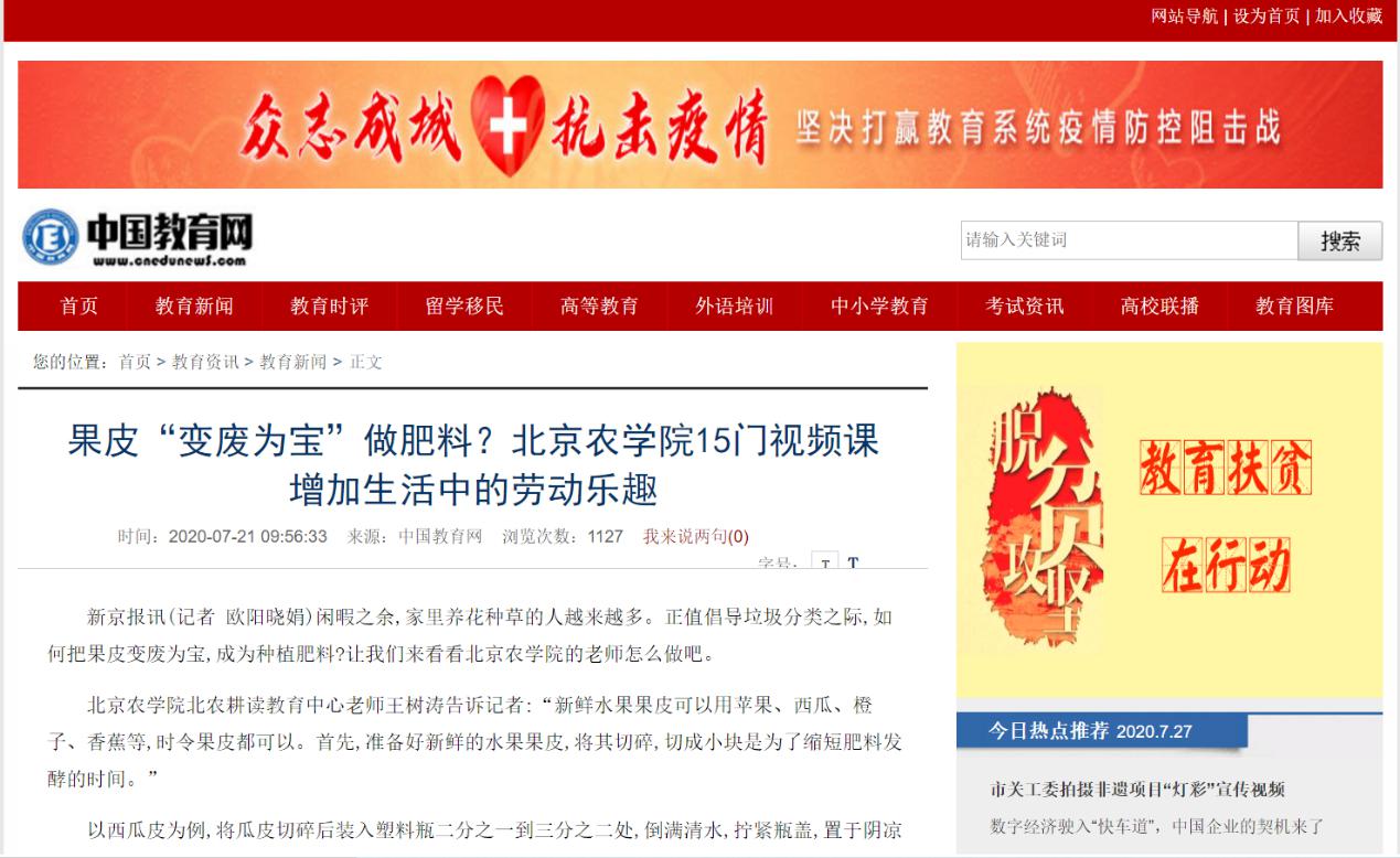 新京报、千龙网、中国教育网等报道公司劳动教育视频课上线