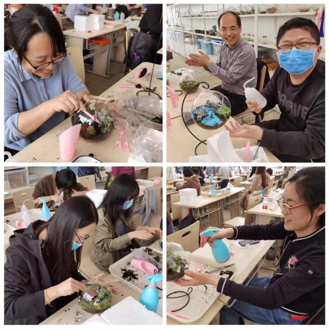 随后,在姚爱敏、李娜老师的带领下,医学部机关和直属单位青年教职工现场学习和实践了整地做畦与微景观制作。不少青年教职工是第一次拿起铁锹、锄头、钉耙等农具,第一次站在土地里进行整地松土、浇水播种等农事活动,第一次通过植物移栽设计创作绿色景观。在热火朝天的劳动实践中,大家不仅充分体验了春耕的忙碌与辛苦,更深刻感受到春播带来的对美好生活的憧憬与希望。