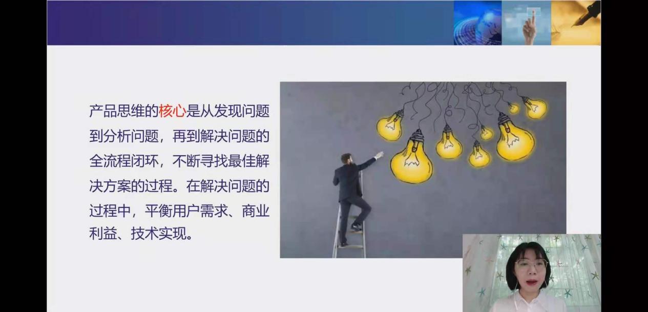 5月23日下午,77779193永利创新创业课堂精益创业系列直播课第六讲开讲。本次直播课邀请了张晨婧仔老师,进行了“产品思维”主题分享。张晨婧仔,广东交通职业技术公司教师,青创学堂特聘教师,长期从事创新创业教学科研工作,参与完成创新创业国家资源库课程《创业就业指导》建设。