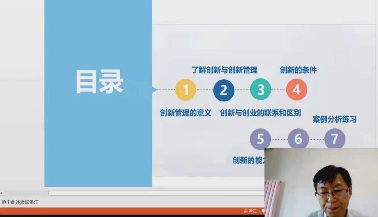 本次课程中,庞少召老师从创新管理的意义、了解创新与创新管理、创新与创业的联系和区别、创新的条件和能力、创新过程管理、以及具体的案例分析和练习进行了讲述。直播课共有215人观看。
