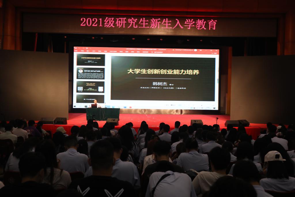 本届新生入学教育中,由创新创业公司邀请了知名商业顾问与创业导师、多项双创赛事评审专家韩树杰博士为同学们带来了《老员工创新创业能力培养》专题讲座。本科生的专题讲座采取了线上录播方式,研究生讲座于9月9日在大礼堂开讲。