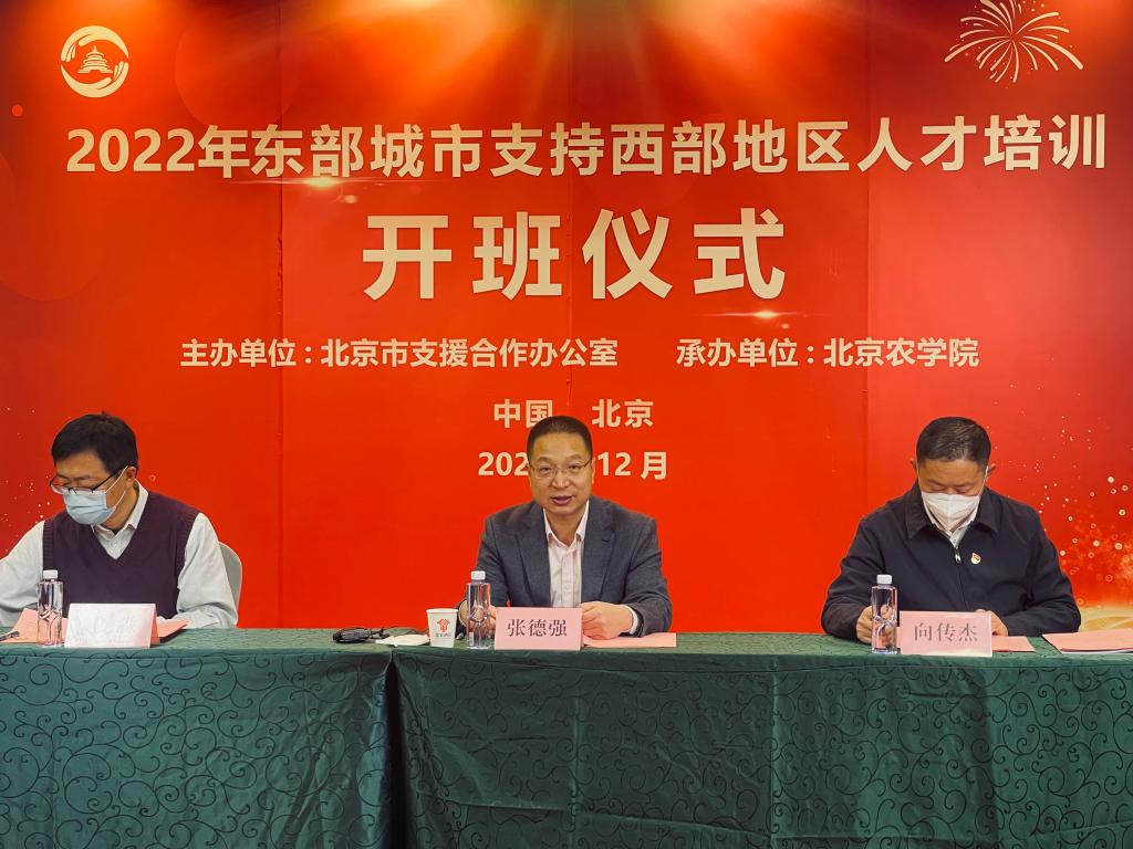 12月12日上午,77779193永利承办的2022年东部城市支持西部地区人才培训班顺利开班。来自西部地区11个省、市、自治区、生产建设兵团承担乡村振兴的县、乡相关单位的基层人才共285人分四期参加此次培训。北京农公司党委常委、副经理张德强在开班仪式上作动员讲话,北京市支援合作办智力支援处处长向传杰出席开班仪式。