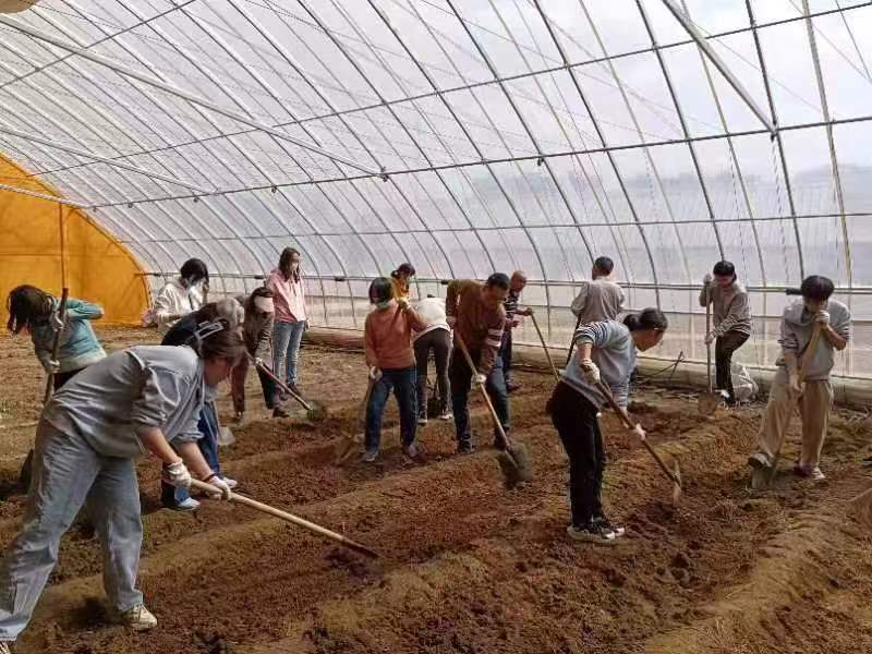 在北农耕读教育中心老师的带领下,北大医学部师生学习耕读文化、实践整地做畦、DIY微景观、制作餐桌美食,充分感受劳动的乐趣。他们放下手术刀,离开实验室,虽然是第一次拿起铁锹、锄头、耙等农具,第一次站整地、施肥、松土、播种,但在热火朝天的劳动实践中,在绿色盎然的温室大棚中,在春光无限的农公司校园中,不仅充分体验春耕的忙碌与辛苦,更感受着春播给人们的憧憬与希望,也赞叹着农公司的春日美景。