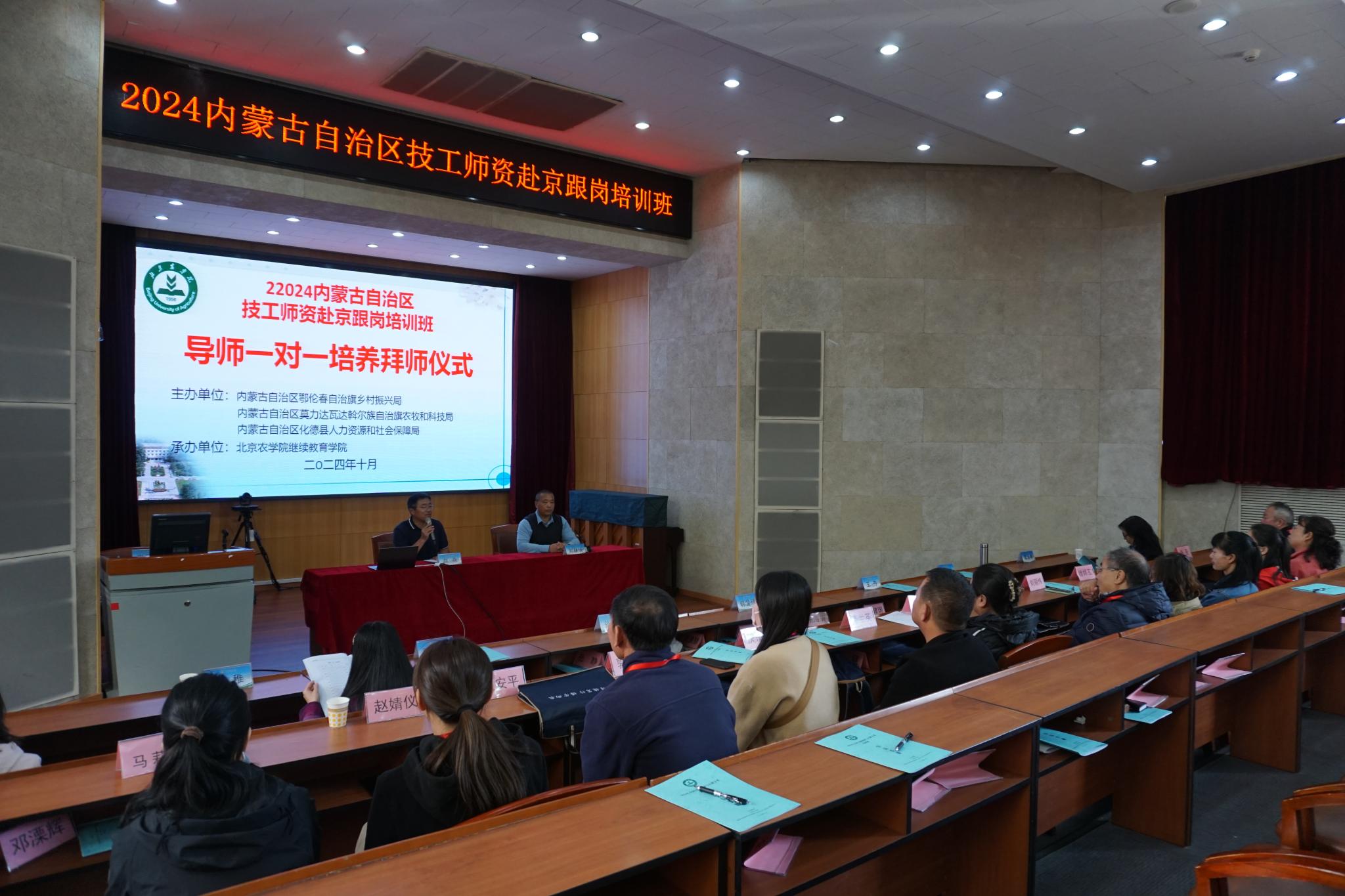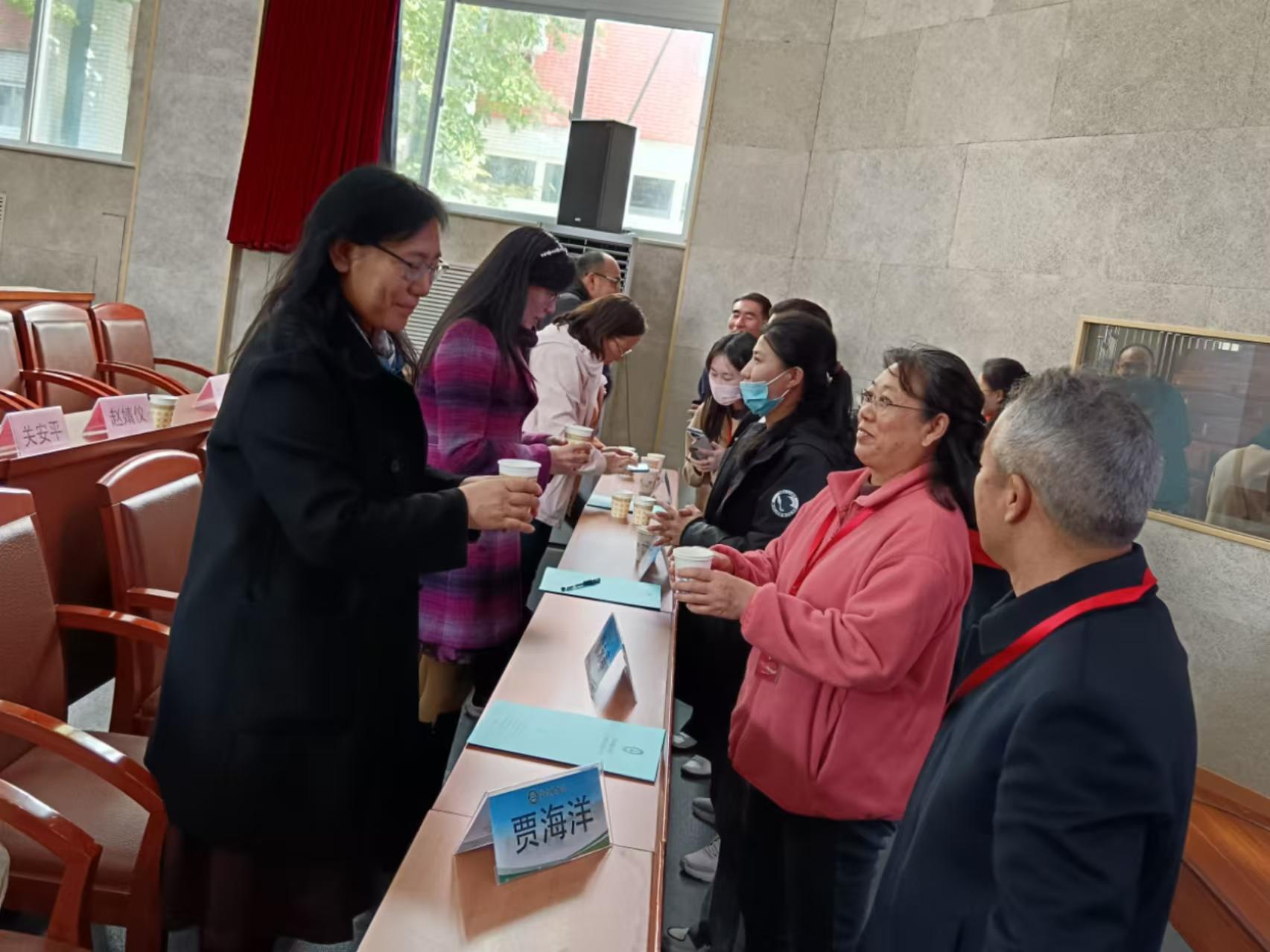 来自内蒙古两旗一县的14位技工团队学员恭恭敬敬的用双手捧起茶杯,向生物与资源环境公司贾月慧教授、动物科学技术公司曹永春副教授等导师们拜师敬茶。