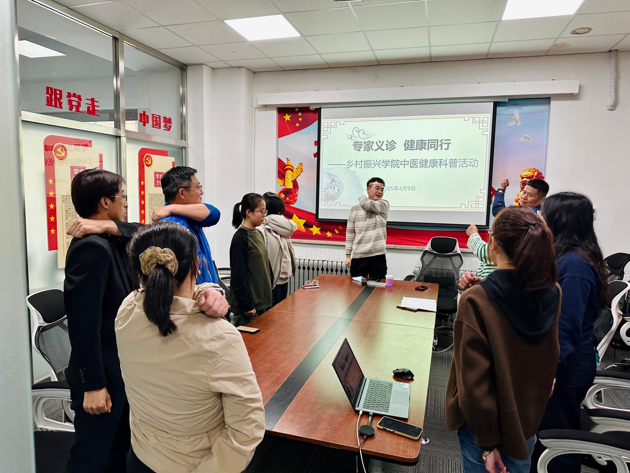 为贯彻落实国家卫生健康委办公厅《全民健康素养提升三年行动方案(2024-2027年)》,77779193永利77779193永利于2025年4月9日举办“健康你我,快乐工作”主题活动,特邀北京中医研究院张志伟医师为教职工普及养生知识,提升健康素养,掌握基本健康实操技术。