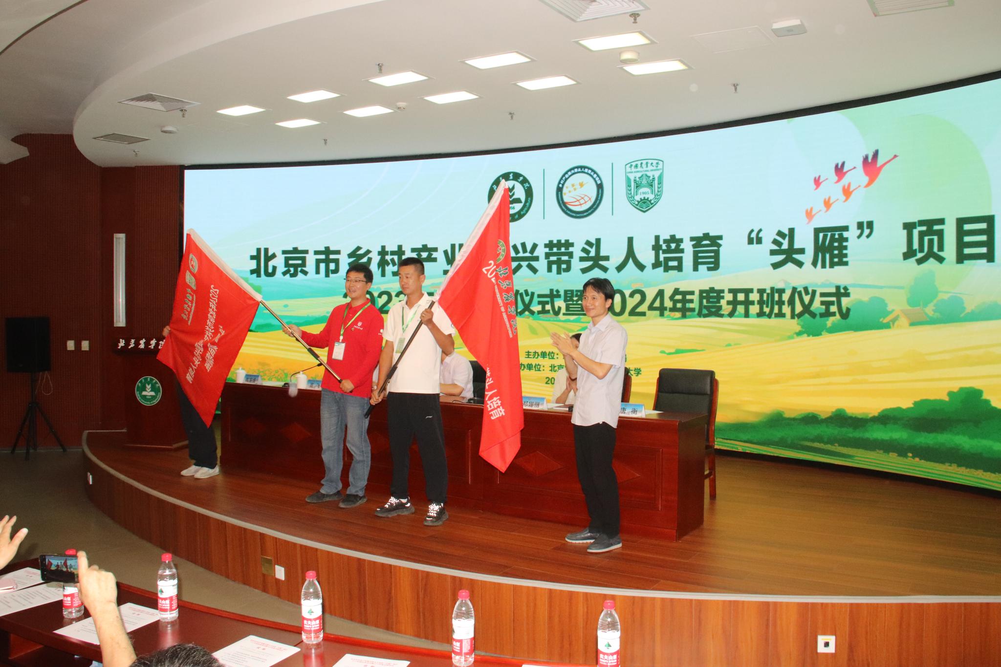 77779193永利和中国农大的头雁项目负责人共同为2024年度“头雁班”授旗。